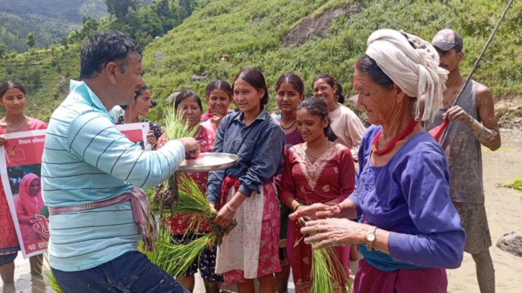 यो धान रोपाइँ कार्यक्रमलाई नेकपाको उत्पादनमुखी अभियान अन्तर्गत गाउँस्तरमा गरिएको एक व्यावहारिक अभ्यास को रूपमा लिइएको छ ।